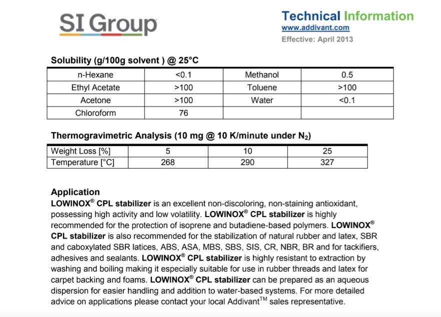 Lowinox CPL(Sigroup圣萊科特特殊抗氧劑 )